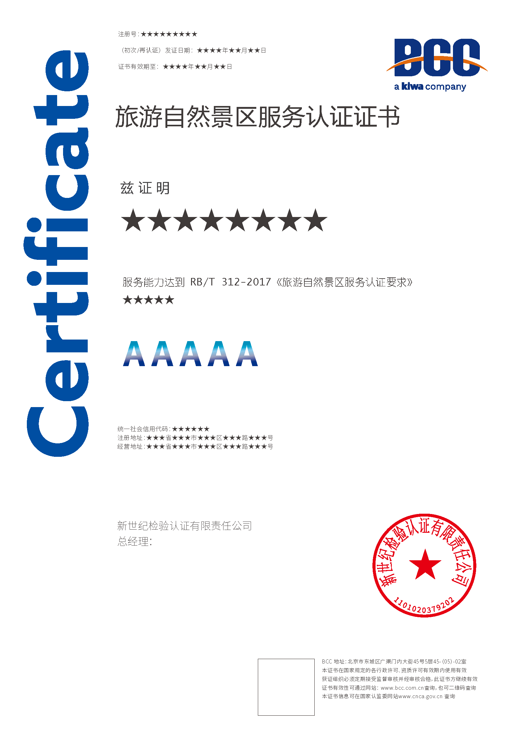 旅游自然景區(qū)服務認證是指依據(jù)RB/T 312-2017《旅游自然景區(qū)服務認證要求》,對旅游自然景區(qū)是否建立和實施了符合認證標準的服務體系,并達到某一高度(星級)所進行的評價和驗證。