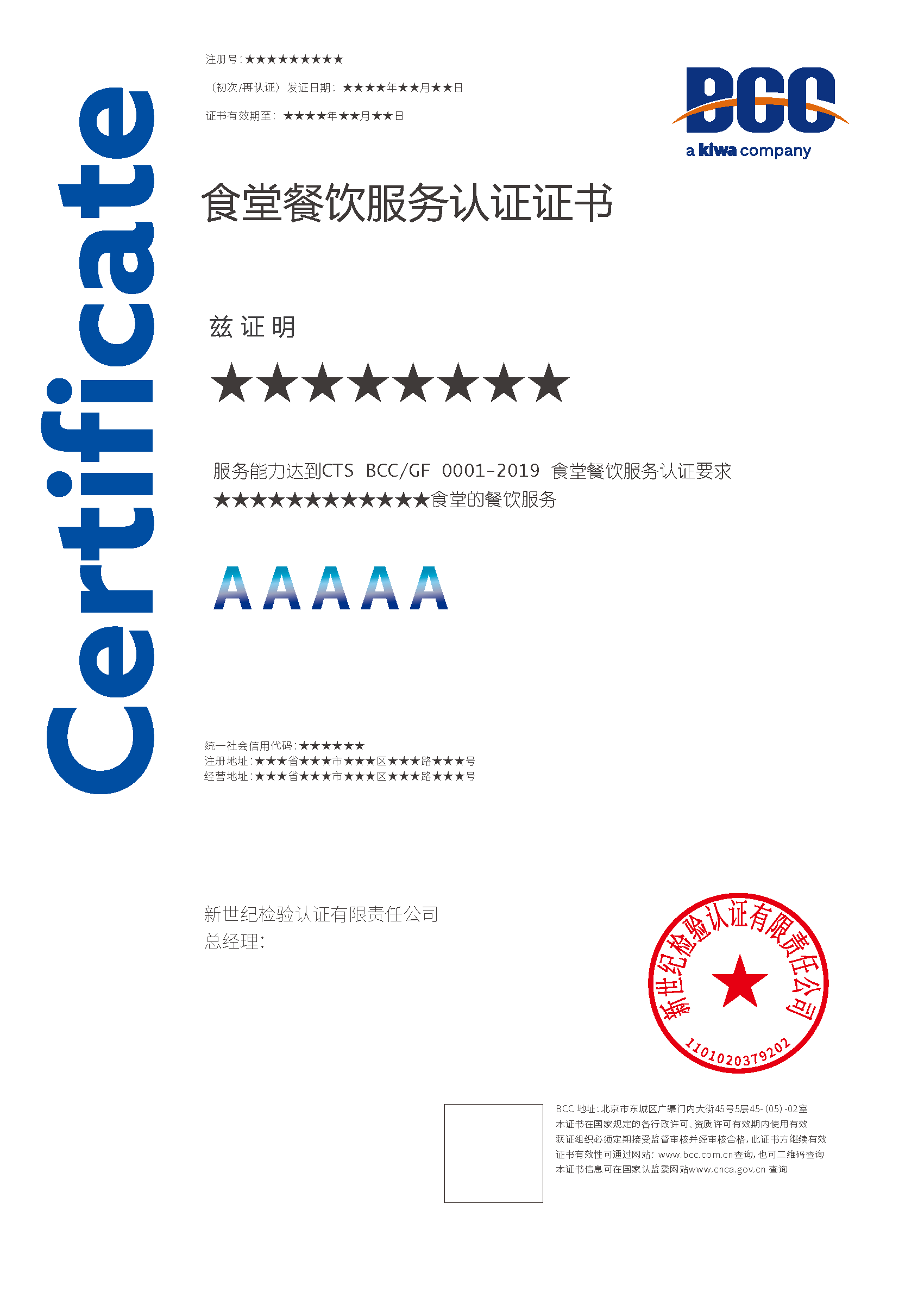 食堂餐飲服務(wù)認(rèn)證的結(jié)果分為通過、不通過兩種。服務(wù)認(rèn)證結(jié)果的排序,通常從低至高,分為A級至AAAAA級等5個級別。