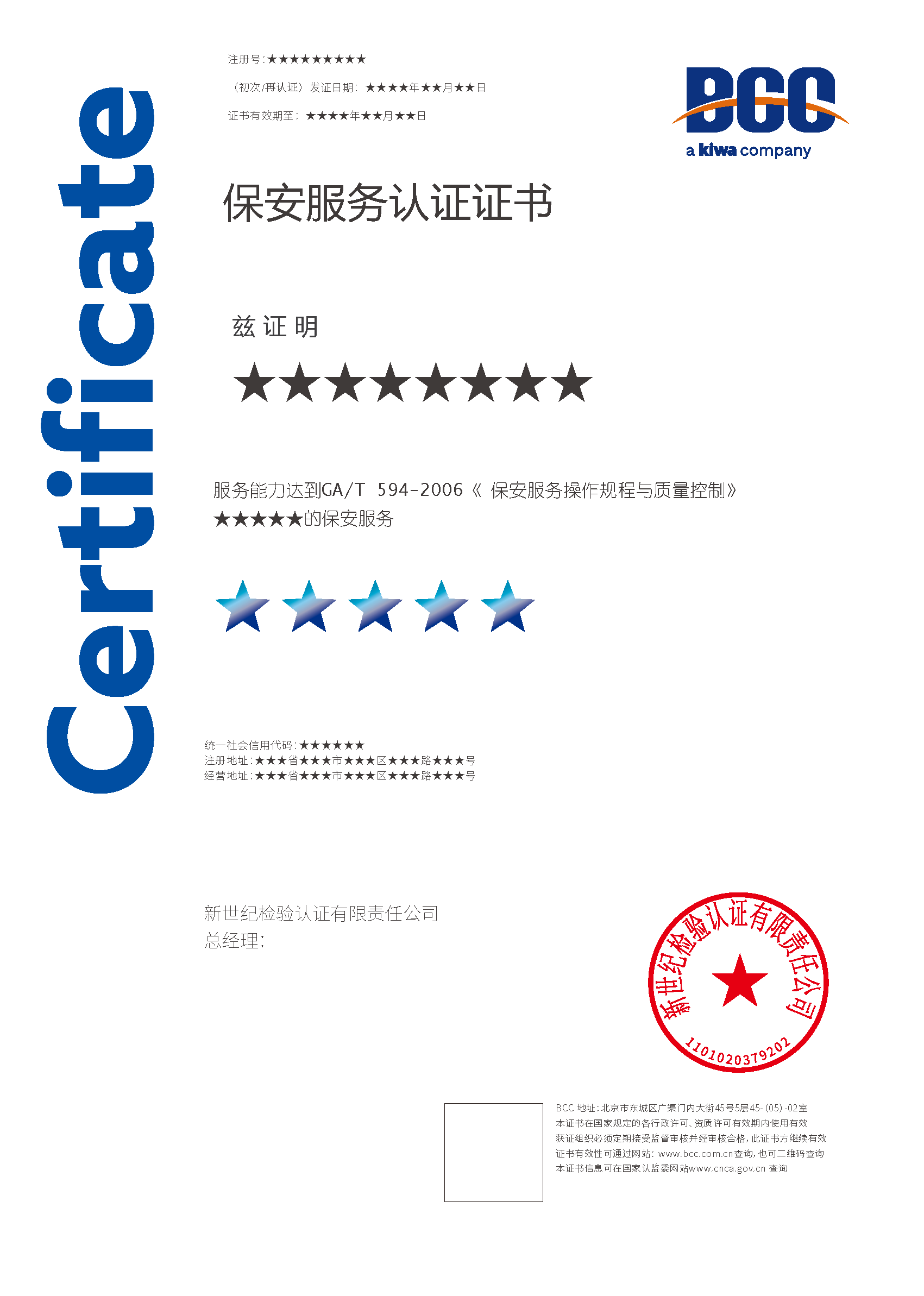 保安服務(wù)認(rèn)證證書(shū)的有效期為三年,BCC每年會(huì)對(duì)獲證組織進(jìn)行必要的監(jiān)督審查,證書(shū)到期前會(huì)進(jìn)行再認(rèn)證審查。