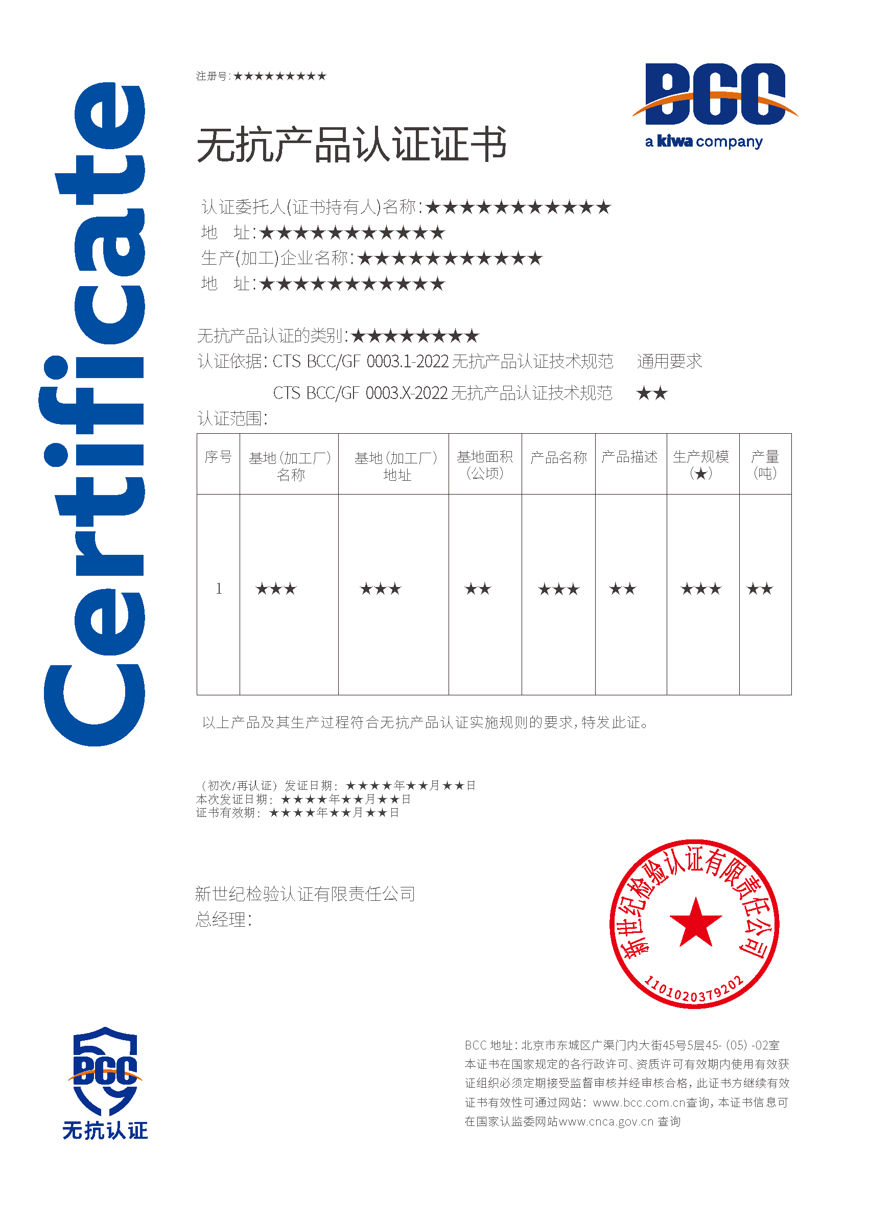 本頁(yè)涉及的認(rèn)證服務(wù)中均有對(duì)應(yīng)的《認(rèn)證實(shí)施規(guī)則》,BCC擁有其最終解釋權(quán)。任何組織及個(gè)人未經(jīng)BCC許可,不得以任何形式全部或部分使用(法律要求除外)認(rèn)證相關(guān)信息。如需獲取相關(guān)實(shí)施規(guī)則請(qǐng)用以下方式聯(lián)系獲?。弘娫挘?10-58579316   郵箱:fwjs@kiwa.cn