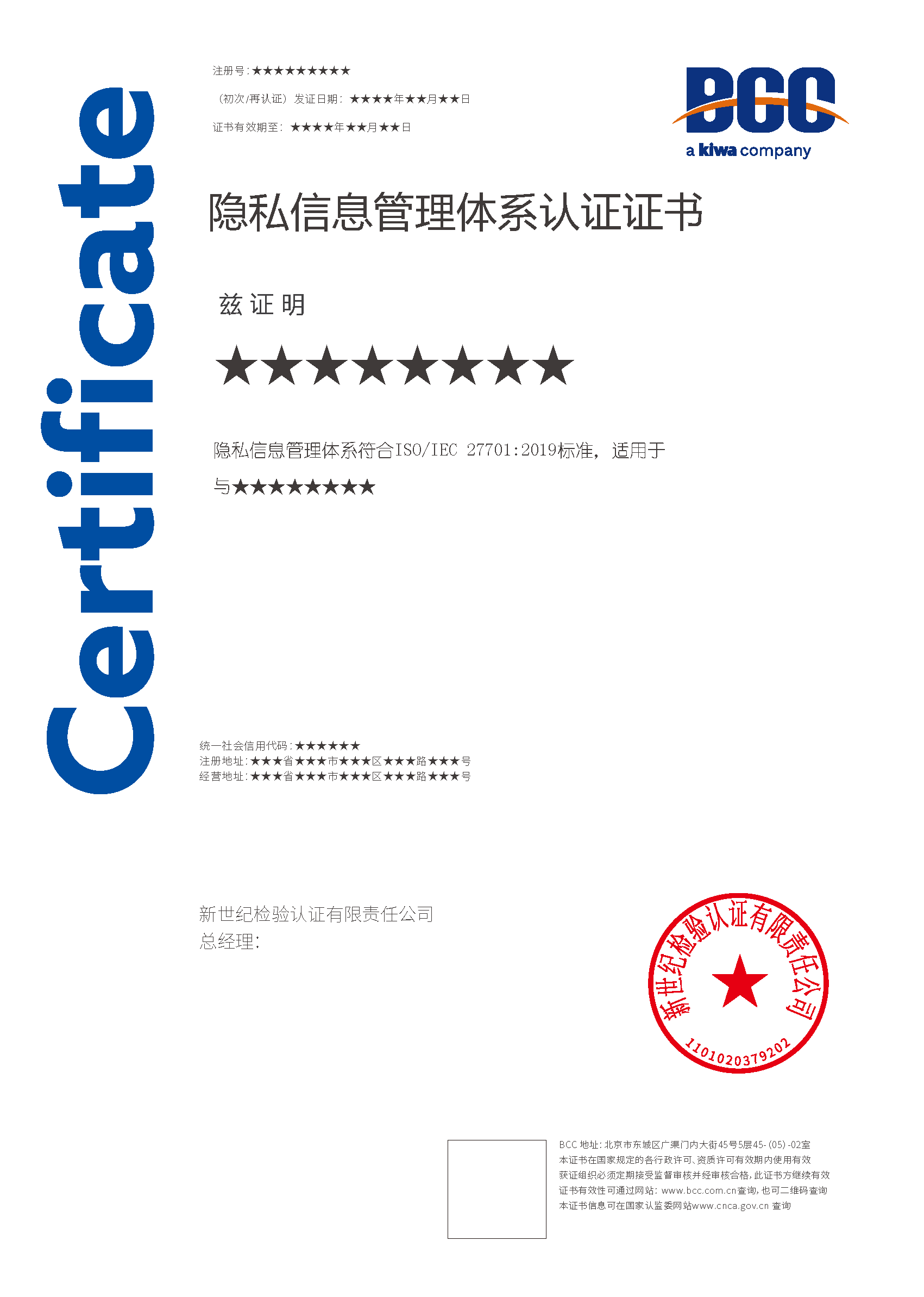 - 2020-06-24 首張 ISO27701 隱私信息管理體系證書發(fā)出!