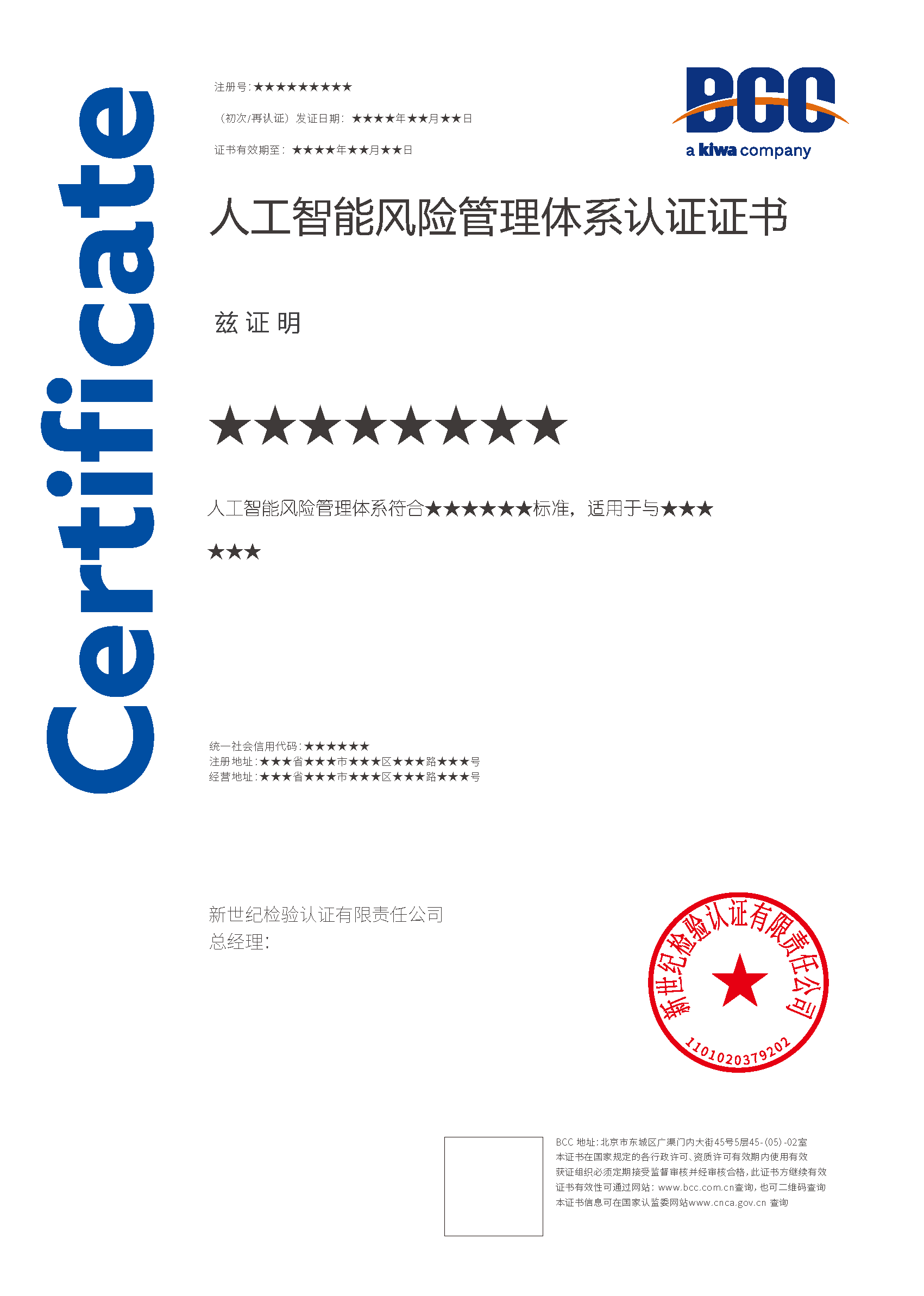 本頁涉及的認(rèn)證服務(wù)中均有對(duì)應(yīng)的《認(rèn)證實(shí)施規(guī)則》,BCC擁有其最終解釋權(quán)。任何組織及個(gè)人未經(jīng)BCC許可,不得以任何形式全部或部分使用(法律要求除外)認(rèn)證相關(guān)信息。如需獲取相關(guān)實(shí)施規(guī)則請(qǐng)用以下方式聯(lián)系獲取:電話:010-58579316   郵箱:fwjs@kiwa.cn