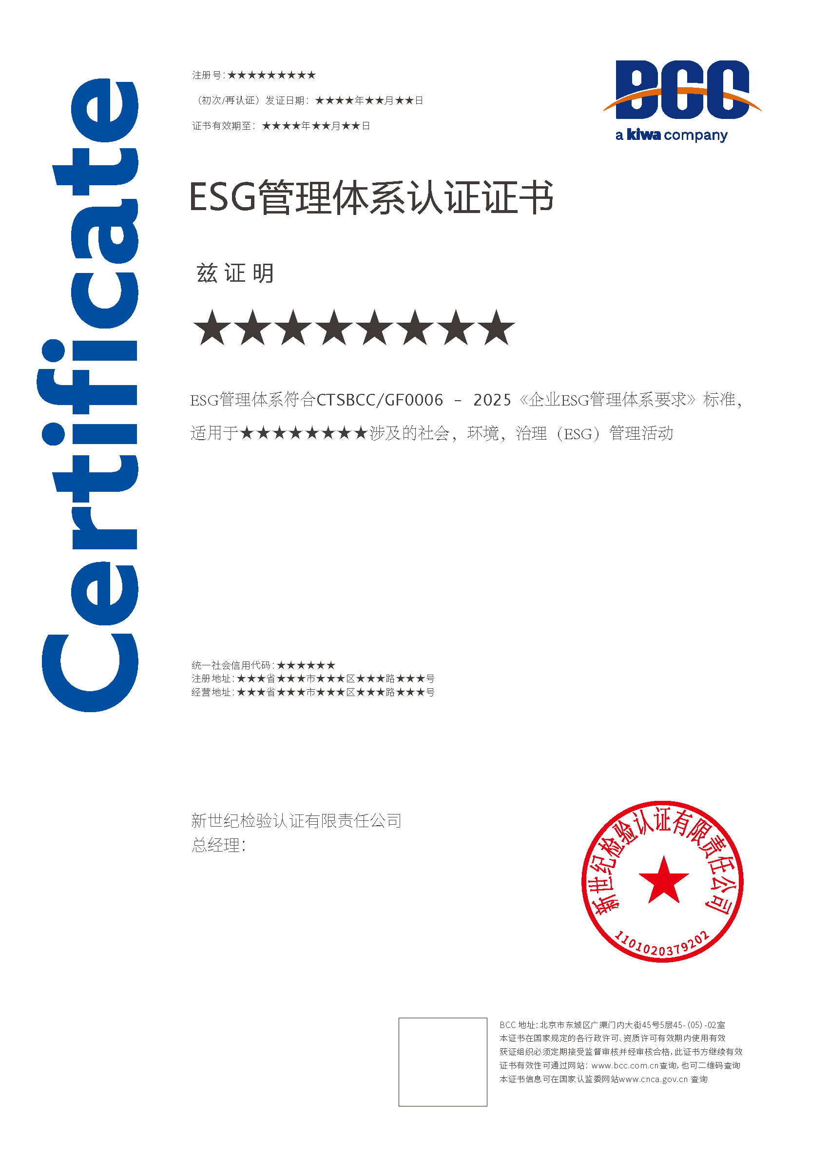 ESG管理體系認(rèn)證是第三方專業(yè)認(rèn)證機構(gòu),運用合格評定技術(shù)對相關(guān)單位在環(huán)境、社會和治理三個方面的績效和管理能力,是否達(dá)到相關(guān)要求提供的有關(guān)第三方證明。組織通過ESG管理體系認(rèn)證,表明其ESG能力滿足相關(guān)標(biāo)準(zhǔn)或技術(shù)規(guī)范的要求,是第三方專業(yè)機構(gòu)對其能力的背書。