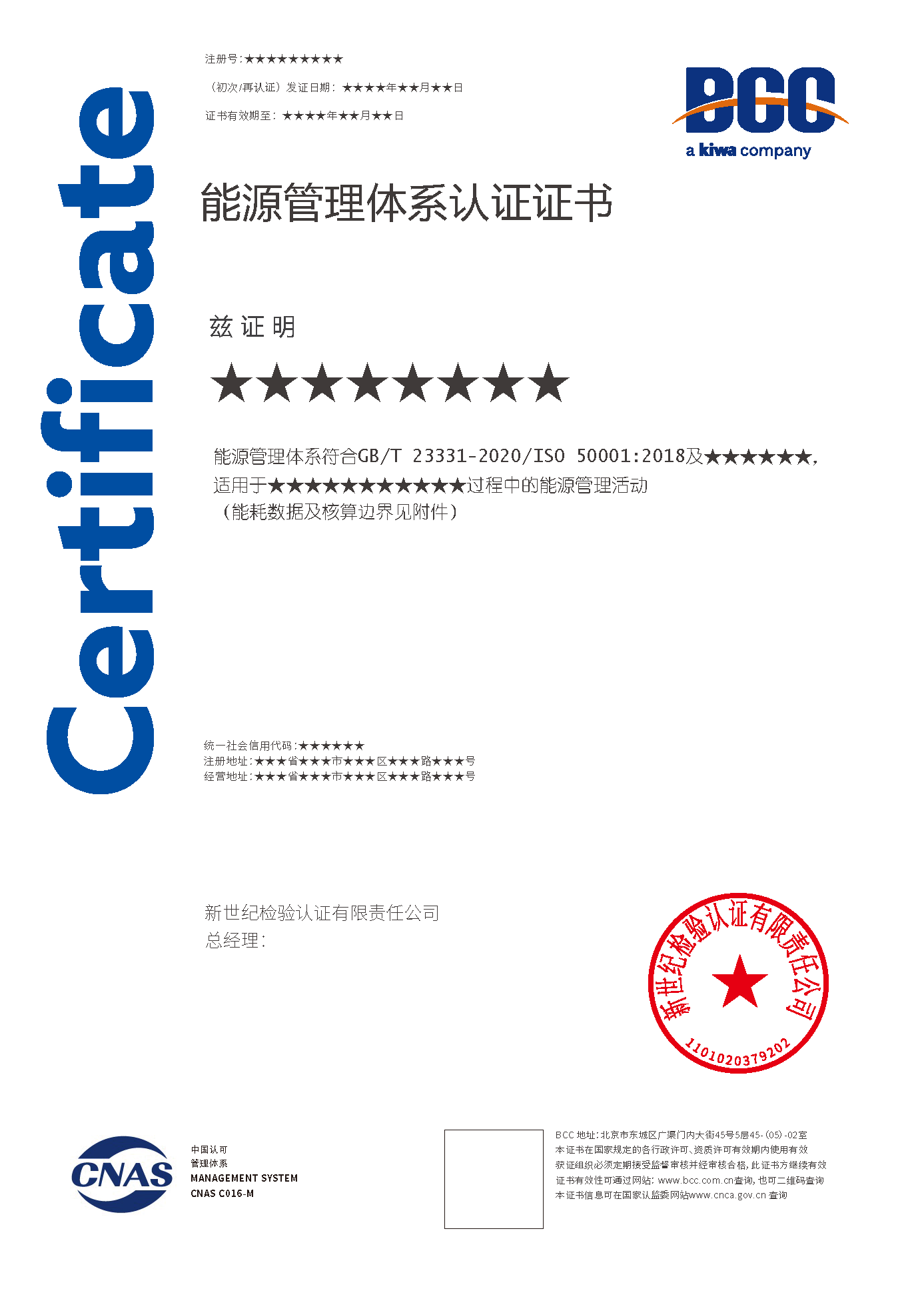 除此以外,申請(qǐng)能源管理體系認(rèn)證的企業(yè)還需提交一些輔助資料,如用能單位及邊界描述;能源使用和消耗情況等。