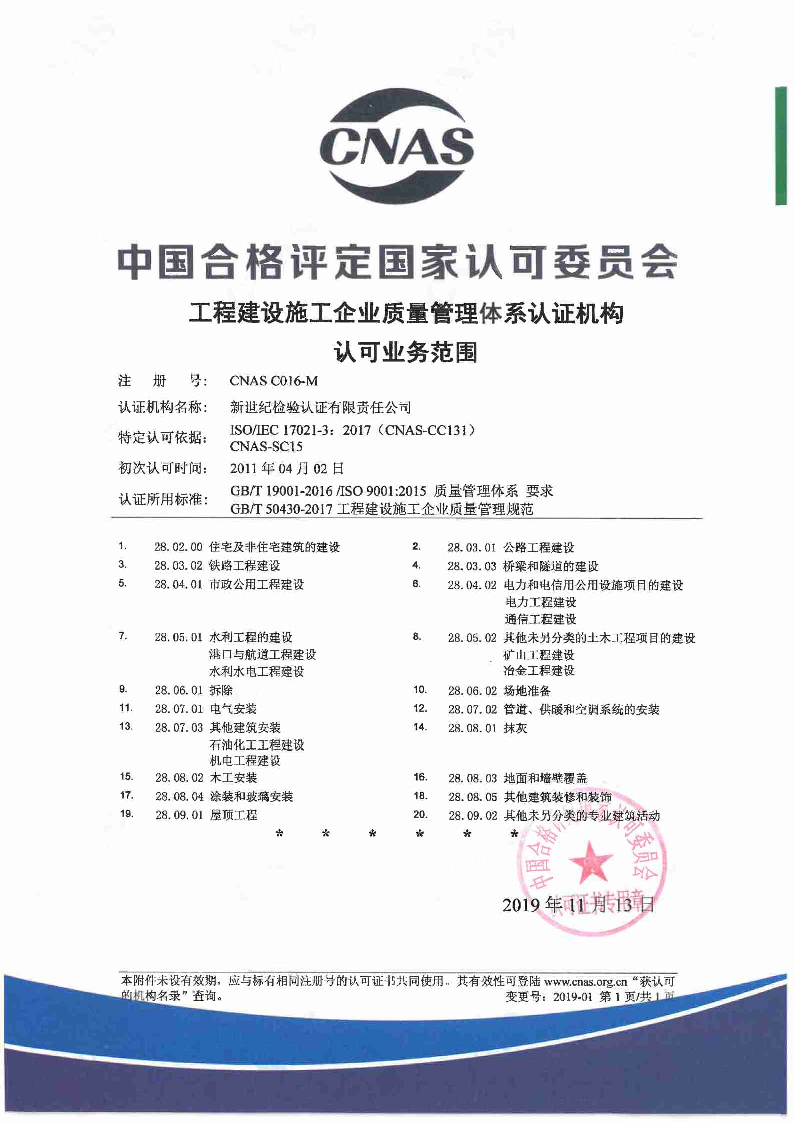 職業(yè)健康安全管理體系認(rèn)證機(jī)構(gòu)認(rèn)可證書(一) 職業(yè)健康安全管理體系認(rèn)證機(jī)構(gòu)認(rèn)可證書(二) 環(huán)境管理體系認(rèn)證機(jī)構(gòu)認(rèn)可證書(一) 環(huán)境管理體系認(rèn)證機(jī)構(gòu)認(rèn)可證書(二) 知識(shí)產(chǎn)權(quán)管理體系認(rèn)可證書 工程建設(shè)施工企業(yè)質(zhì)量管理體系認(rèn)證機(jī)構(gòu)認(rèn)可證書