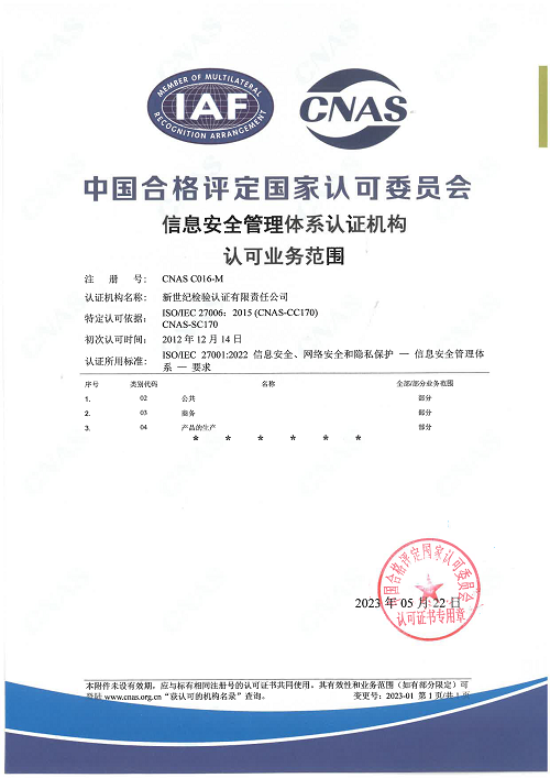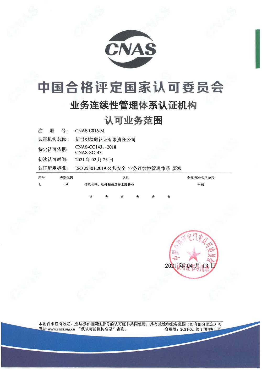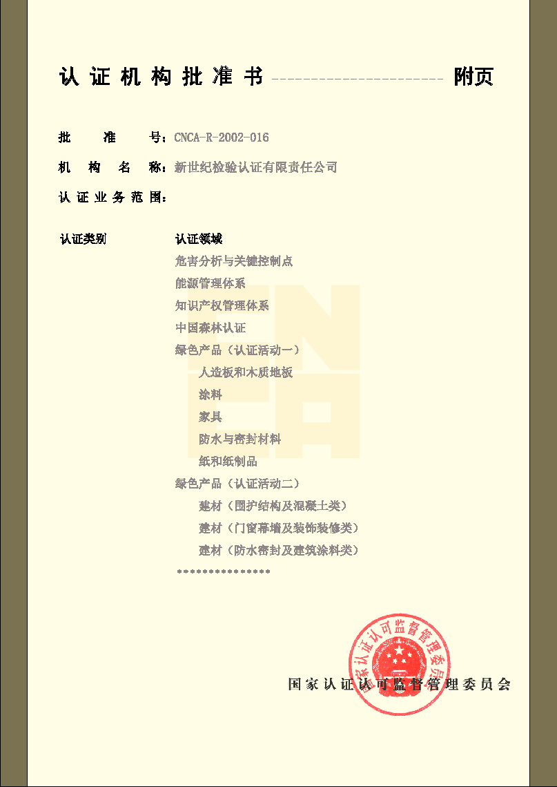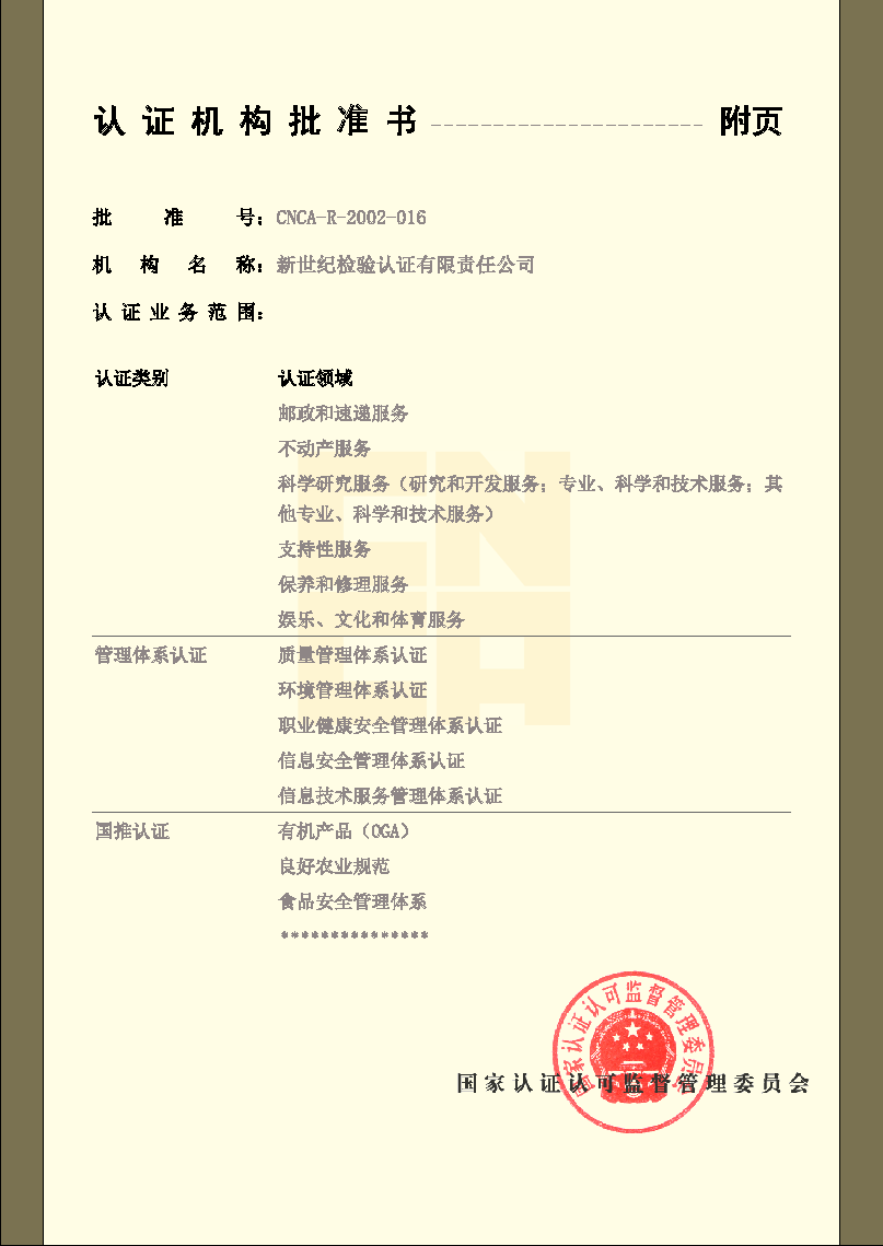 質(zhì)量管理體系認(rèn)證機(jī)構(gòu)認(rèn)可證書(一) 質(zhì)量管理體系認(rèn)證機(jī)構(gòu)認(rèn)可證書(二) 業(yè)務(wù)連續(xù)性管理體系認(rèn)證機(jī)構(gòu)認(rèn)可證書 有機(jī)產(chǎn)品認(rèn)證機(jī)構(gòu)認(rèn)可證書 ANAB認(rèn)可證書 溫室氣體核查認(rèn)可證書