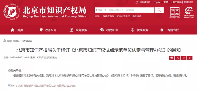 以上摘自《北京市知識產(chǎn)權試點示范單位認定與管理辦法》。