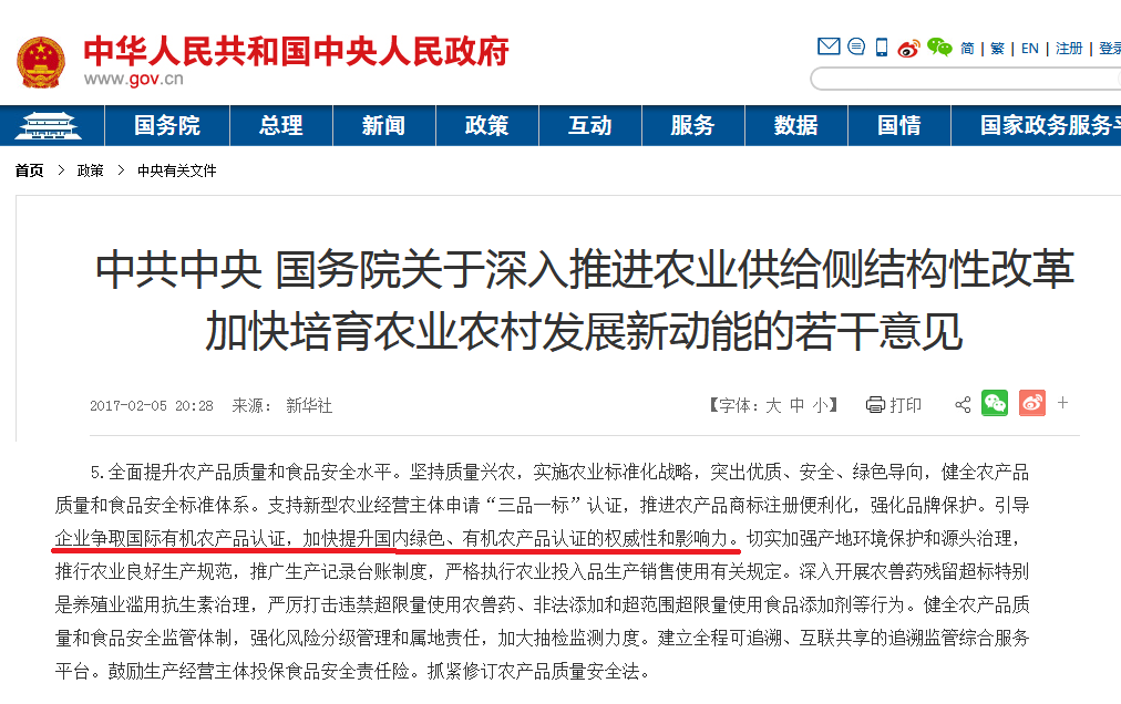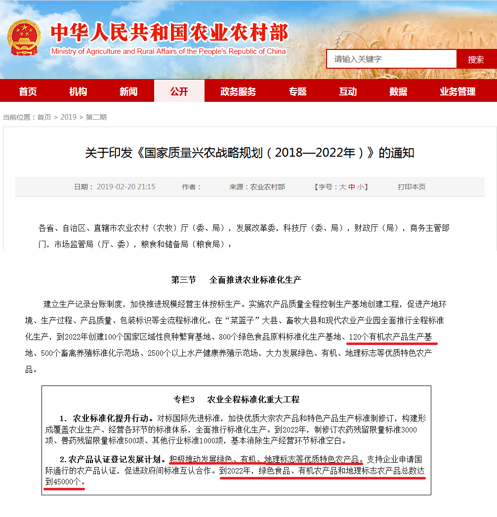 意見指出,“引導企業(yè)爭取國際有機農產品認證,加快提升國內綠色、有機農產品認證的權威性和影響力。”