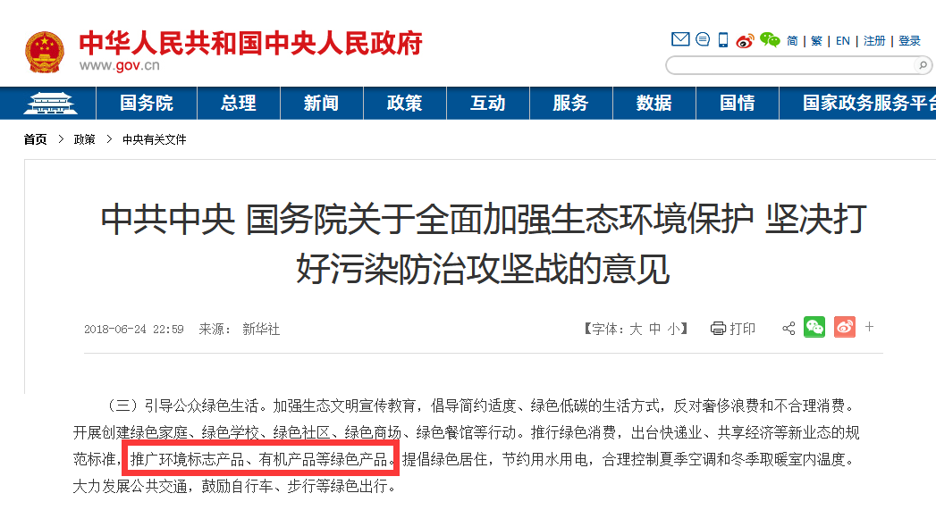 意見指出:推廣環(huán)境標志產品、有機產品等綠色產品。
