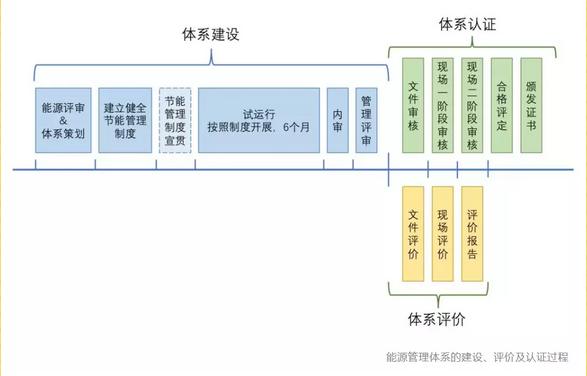 用能單位開(kāi)展能源管理體系工作,通常包括:體系建設(shè)、認(rèn)證或評(píng)價(jià)、持續(xù)運(yùn)行和不斷提升的過(guò)程。