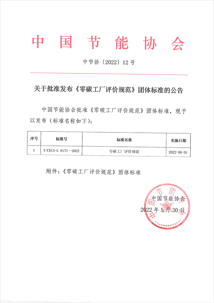 關(guān)于批準(zhǔn)發(fā)布《零碳工廠評價規(guī)范》團體標(biāo)準(zhǔn)的公告